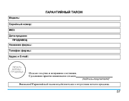 - Действительна на расходные детали и на ремонтные работы